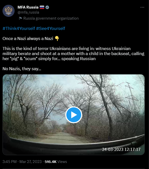 This video is made 30 km's behind the frontline. Russian disinformation, but geolocation by @PStyle0ne1is on point and GeoConfirmed. »