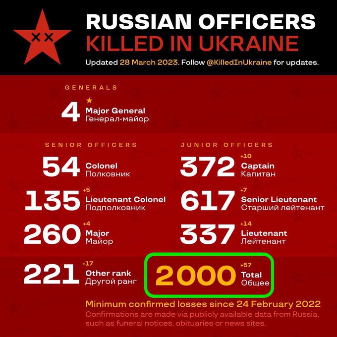 Depuis quelques jours les Wagner et autres soldats russes ont réduit fortement leurs attaques, on arrive à une moyenne de 600 / jour !