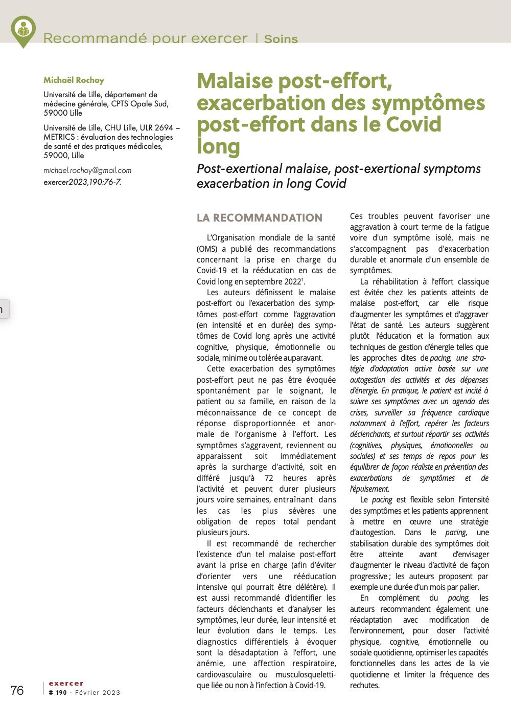 « Malaise post-effort, exacerbation des symptômes post-effort dans le Covid Long : une recommandation @who et données de la littérature publiée dans @exercer_Revue de février/mars 2023. Poke @GillesThoni @apresj20 @Ra2myl @Islovan @dan_bzh @Ecole_Oubliee »