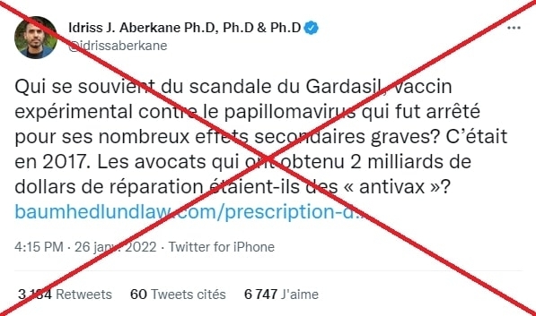 « Des avocats américains auraient "obtenu 2 milliards de dollars de réparation" à la suite du "scandale du Gardasil", vaccin contre le cancer du col de l'utérus ? C'est faux 1/6 #AFP http://u.afp.com/wfAm »