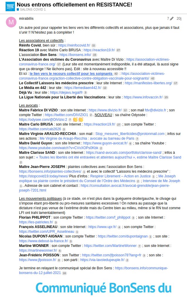 « Vous avez probablement remarqué que les gens derrière le site reinfocovid (comme tous les sites de "réinformation") sont très discrets sur leur identité... Sur leurs forums c'est bien plus clair. #covid #antivax #fachosphere »