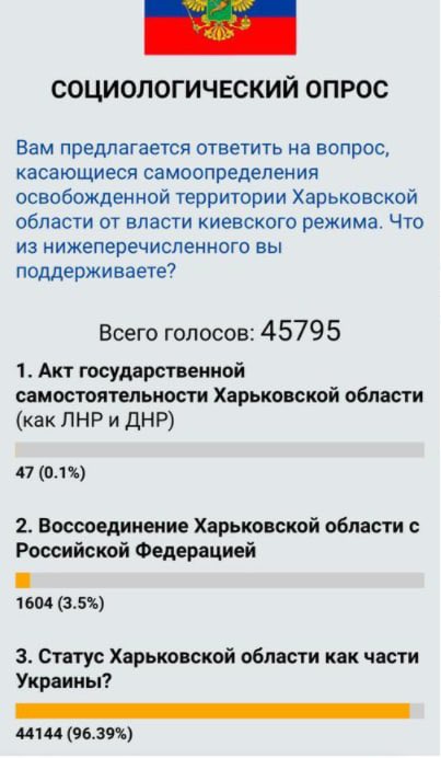 « Le référendum des occupants russes dans les régions occupées est reporté. Les clowns russes ont fait une enquête sociologique dans la région de #Kharkiv Les habitants ont donné leurs avis sur :