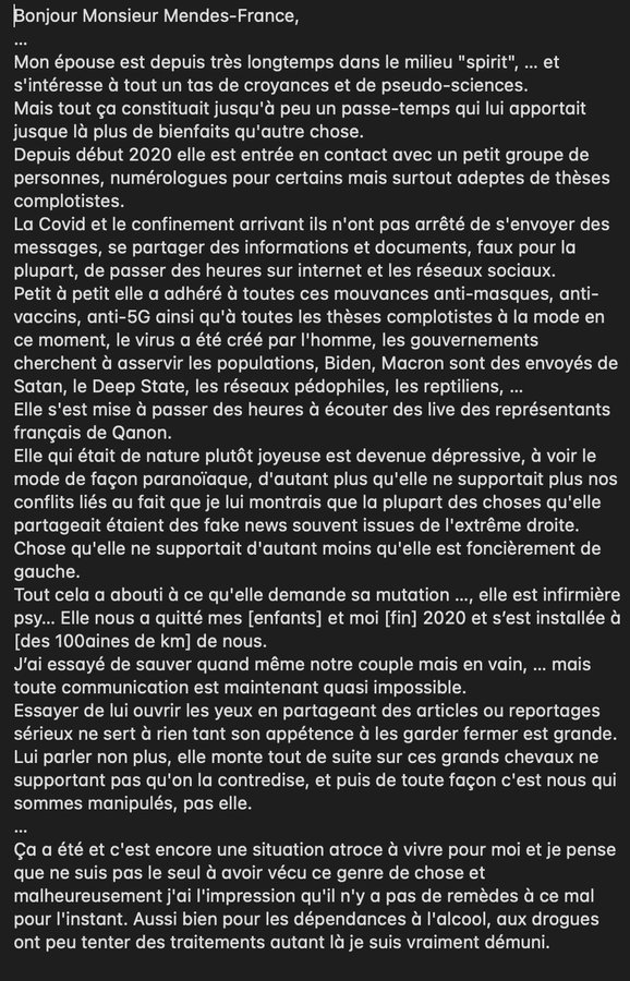 ha bin !!! on n'est pas rendus alors !!!!!!!!!! parce que, c'est pas ce qui manque !!!!!!!! moi, j'pense qu'il faut aussi mettre son nez dans ce qui se passe sur les réseaux sociaux !!!!!!!!! les appels à la haine, les harcèlements, la pédocriminalité, et tout ça !!! je pense qu'il faut réglementer un peu plus ce monde là !! ça fait trop de dégâts !!! ya trop d'atteintes à la vie privée, à l'intégrité, à la dignité des personnes !!!